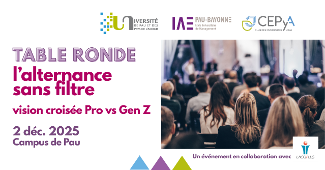 - Un événement organisé par l'Université de Pau et des Pays de l'Adour - UPPA (IAE Pau-Bayonne, DFTLV) et son club d'entreprises, le CEPyA,