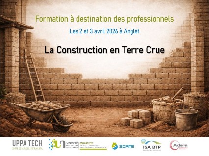 La plateforme UPPA Tech MATCO, dédiée à l’étude des matériaux de construction, adossée au laboratoire SIAME et accompagnée par l’ADERA, vous propose de développer vos connaissances et compétences sur les matériaux et les méthodes de mise en œuvre des techniques de construction en terre crue.